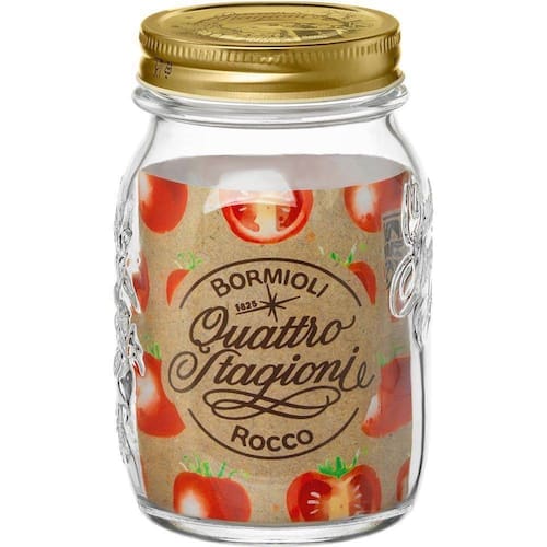 O pote da coleção Quattro Stagioni pertence à marca Bormioli Rocco, uma renomada fabricante italiana de vidro. Essa coleção é, há mais de 40 anos, o símbolo das conservas caseiras.