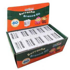 Borracha Branca 60 altura: 6mm largura: 20mm comprimento: 30mm certificado pelo inmetro características do Produto não suja e não enruga o papel atóxico. Composição resina termoplástica, isenta de pvc, carga inerte e pigmentos atóxicos.