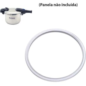 Borracha com aba dupla em silicone.Instruções da embalagem: Lave com água e detergente neutro. Alongue o anel apenas o necessário. Encaixe o anel com o lado curvo da borda da tampa. Substitua o anel sempre que a panela apresentar vazamento.ATENÇÃO: Antes de substituir o anel, verifique a válvula de segurança e o pino central. Caso a válvula não esteja em bom estado, endurecida e ressecada, substitua por uma nova. O pino central e o peso controlam a pressão da panela e devem estar sempre desobstruídos e limpos a cada cozimento.Com a troca do anel, a panela volta a funcionar com a sua pressão plena. A falta de verificação da válvula e do pino poderá acarretar em sérios acidentes.Composição: Borracha sintética, cargas de reforço, aditivos e agentes de vulcanização. Silicone, peróxido de DHBP e pigmentos. Borracha para fechamento externo.Qualidade: Anel de silicone, 100% atóxico, ou seja, não contamina os alimentos.Durabilidade: Dura 10 vezes mais, quando comparado com outros anéis de borracha comum.Economia: Diminui o tempo de cozimento dos alimentos, pois veda a tampa da panela com maior eficácia.Limpeza: Lavar sempre o anel e a válvula de segurança.Diâmetro Interno: 23,5 cmDiâmetro Externo: 25,7 cmCod:1163 Ean: 7896472000678