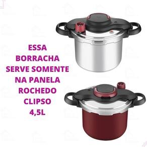 Nosso empenho é procurar o que há de mais atual e funcional no mundo culinário e para organização da sua casa, priorizando sempre a qualidade e a versatilidade dos produtos. Borracha silicone panelas rochedo clipso 4,5l Borracha para panelas com fechamento externo, rochedo clipso 4,5 litros. As borrachas de silicone 100% atóxico, não ressecam, são melhores para o desempenho da sua panela, fazendo com que a vedação seja total. O anel de vedação deve ser substituído sempre que ficar rígido ou quebradiço. Medidas aproximadas: Diâmetro externo: 22,5 cm; Diâmetro interno: 19,5 cm; Espessura: 2 cm Material: Silicone Fique atento à algumas dicas de uso: - jamais coloque a panela quente embaixo da água fria, esse choque térmico causa deformidades no alumínio; - mantenha sempre o pino central limpo, faça a limpeza com algo de metal, não use palito de dente, ele pode quebrar e você precisará trocar a peça; - prefira cozinhar em fogo baixo, o tempo é o mesmo e evita que a água seque mais rápido. Manutenção em dia = panela segura Gostou Esse produto pode ser seu aguardamos sua compra Marca: Não Informado Ean: 7898937517479