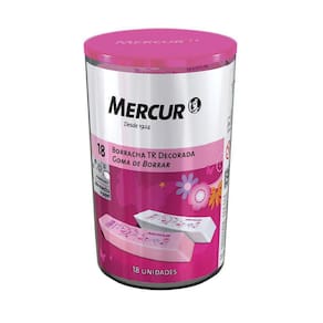 Borracha decorada tr rosa/branca mercur - pote com 18 unidades Borracha decorada tr rosa/branca - pote com 18 unidades Características: - suave e macia, resistente à dobra e não quebra com facilidade - a versão colorida não mancha o papel - com aroma cítrico - indicada para apagar escrita a lápis e lapiseira, e qualquer graduação de grafite - seu formato chanfrado com qunas auxilia na precisão ao apagar Borracha decorada tr rosa/branca mercur - pote com 18 unidades Ean: 17896342905833