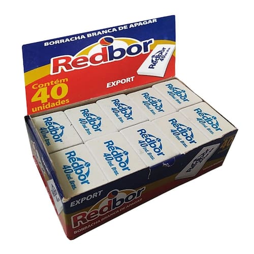 Contém 40 unidades de Borracha Branca Escolar - número 40 redbor composição: borracha natural produto não recomendável para crianças de ate 03 anos de idade.