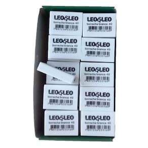 características do produto: não suja e não enruga o papel. Atóxico. Composição: borracha isenta de pvc, carga inerte e pigmentos atóxicos; cinta em resina termoplástica e pigmentos atóxicos. Trabalhamos com responsabilidade e dedicação. Entregamos 100% das mercadorias no prazo. Estamos no ramo ha mais de 35 anos. Nossas embalagem são todas de qualidade e nossos embaladores são ótimos profissionais. Só trabalhamos com marcas. Caso compre depois desse horário enviamos somente no dia seguinte. Descrição: cor: branca tamanho: comprimento: 32mm largura: 23mm altura: 8mm marca: leo leo 1 caixa com 40 unidades