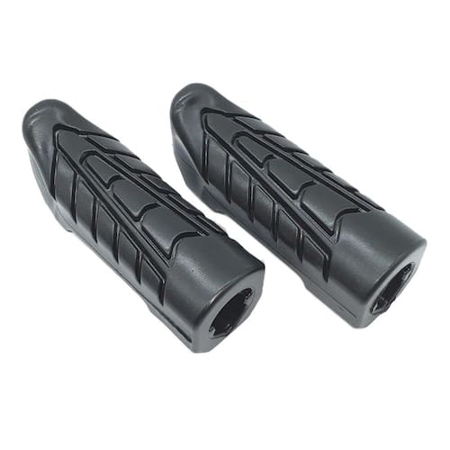 Par de borrachas do estribo dianteiro (pedaleiras) com acabamento reforçado e encaixe perfeito. Ideal para substituição das peças desgastadas, proporcionando conforto, segurança e estética autêntico à sua motocicleta.