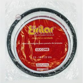 Anel de silicone Eirilar para panelas de pressão profissionais de 13, 18 ou 22 litros da marca Eirilar Anel de silicone 100% atóxico, ou seja, não contamina os alimentos. Dura 10 vezes mais que os anéis de borracha comum. Melhor vedação da tampa da panela. Fácil limpeza. Atenção: borracha para panelas de pressão EIRILAR modelos 13, 18 ou 22 litros. Instruções de uso: - Lava o anel antes de coloca-lo na tampa da panela. - Introduza a borracha posicionando-a na borda interna da tampa e certificando-se que esteja devidamente adaptada ao encaixe da tampa. Ean: 7896747007609