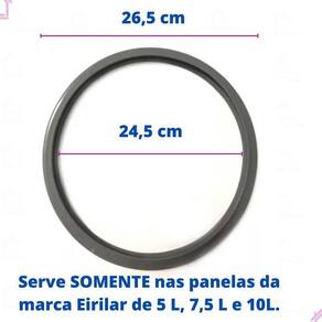 Borracha para panelas de pressão eirilar com fechamento externo de 5 / 7,5 / 10 litros. As borrachas de silicone 100% atóxico, não ressecam, são melhores para o desempenho da sua panela, fazendo com que a vedação seja total O anel de vedação deve ser substituído sempre que ficar rígido ou quebradiço.