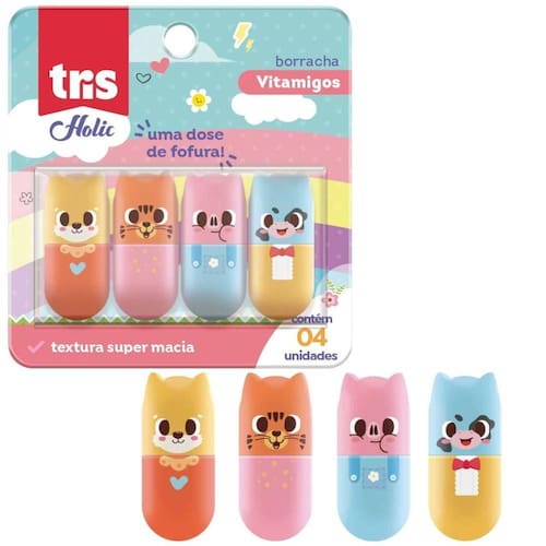 BORRACHA PONTEIRA HOLIC FOFURICES VITAMIGOS - 4 UNID - TRIS
