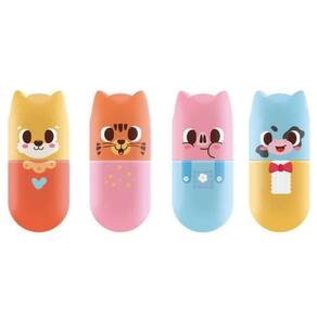 São 4 borrachas com formatos de bichinhos, com roupinhas temáticas!