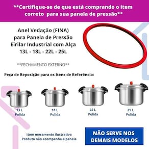 Borracha de silicone fina para panela industrial eirilar 13l, 18l, 22l e 25l fechamento externo - com alça Nosso empenho é procurar o que há de mais atual e funcional no mundo culinário e para organização da sua casa, priorizando sempre a qualidade e a versatilidade dos produtos. A borracha de silicone modelo fina para panelas industriais eirilar é a escolha ideal para quem busca segurança, praticidade e vedação eficiente. Produzida em silicone de alta qualidade, ela proporciona excelente durabilidade e resistência, garantindo o funcionamento perfeito da sua panela. Antes de comprar, compare a sua panela com as imagens do nosso anúncio para confirmar que ela é igual. Características técnicas - compatível com panelas industriais eirilar 13l, 18l e 22l fechamento externo - com alça - material: silicone de alta qualidade - diâmetro externo aproximado: 37 cm - diâmetro interno aproximado: 35 cm - largura aproximada: 2 cm Benefícios: - vedação total e segura para sua panela. - silicone resistente, fácil de limpar e higiênico. - aumenta a durabilidade e o bom desempenho da sua panela. Conteúdo da embalagem 1 borracha de silicone fina para panela industrial eirilar Dona li utilidades - produtos que facilitam sua vida. - compra 100% segura. - atendimento qualificado. do vendedor: todos os produtos são conferidos e embalados com cuidado para evitar danos durante o transporte. Garanta já a sua borracha de vedação e mantenha sua panela eirilar sempre segura e funcionando como nova Marca: Não Informado Ean: 7898749652214