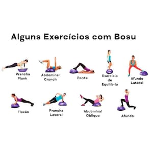 push ups, pranchas e suas variações, climber, burpee, etc. -bosu em uso tradicional - quando o lado da cúpula está voltado para cima, a bola fornece uma superfície instável enquanto sua base permanece estável, utilizado para exercícios atléticos e atividades de tonificação muscular, como por exemplo:
