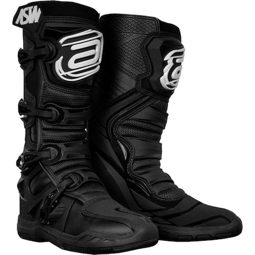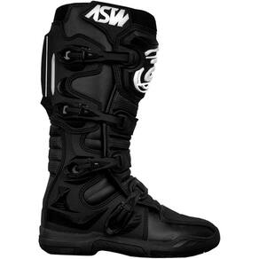 Bota asw elevate Cor: preto Tamanho: 43/44 br (12 usa) Em uma variedade de cores vibrantes e cheias de estilo a bota asw elevate chegou para ficar, une o conforto e a proteção para sua próxima pilotagem off road. Seja qual for a sua modalidade, encare com a bota asw elevate. Detalhes: - sistema de fecho por fivelas totalmente ajustáveis em 4 pontos da bota proporcionam regulagem personalizada ao piloto nas mais variadas condições. - canelas, panturrilhas, calcanhares e reforço interno em plástico injetado padrão ce oferecem ampla proteção nas 2 áreas mais críticas. - sola colada de borracha de alta densidade, resistente a abrasão e antiderrapante. - mix de couro sintético e couro natural oferecem resistência a abrasão e também ao calor. - confortável, maleável, segura e confiável. Especificações: - 1,5 kg cada pé, 3 kg o par. Conteúdo da embalagem: - 01 par.