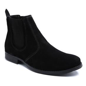 Bota Botina Casual em Couro Masculino Elástico Calce Fácil Elegante Confortável - 41 - Preto
