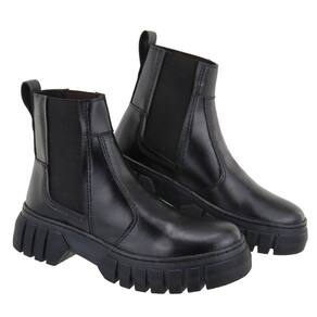Bota Botina Feminina Calce Facil Ajuste Elastico Puxador Traseiro Solado Tratorado Borracha - 38 - Preto