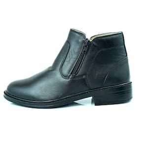 Bota Botina Social Em Couro Masculina Forro Cacharrel Ziper Bico Redondo Palmilha Confortavel - 42 - Preto