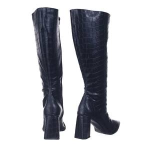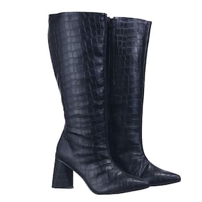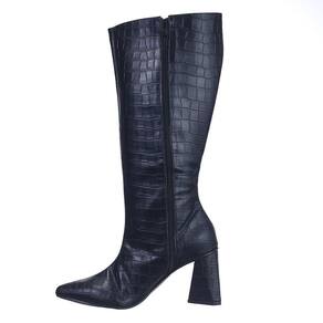 Bota Cano Alto Feminina Croco Salto Grosso e Bico Fino Fecho Zíper - 33 - Preto