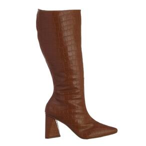 Bota Cano Alto Feminina Croco Salto Grosso e Bico Fino Fecho Zíper - 40 - Marrom