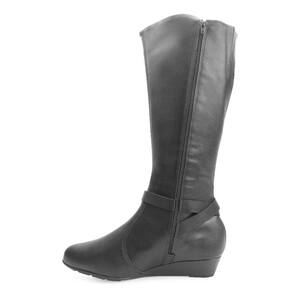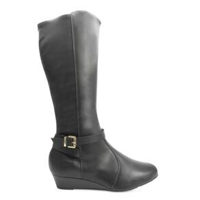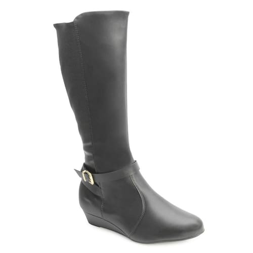 Nome: Bota Cano Alto Modare MD24-70761. Gênero: Feminino. Indicado Para: Dia a dia. Ocasião: Casual. Material Externo: Alternativo. Material Interno: Têxtil acolchoado. Detalhe: Texturas na parte de trás e fivela na lateral. Fechamento: Zíper na lateral interna. Palmilha: Forrada e macia. Solado: Borracha antiderrapante. Tipo de Salto: Anabela. Altura do Salto: 3,5 cm. Circunferência: 44 cm aproximadamente. Cano: 40 cm. Peso do Produto: 1.343 g (o peso varia de acordo com a numeração). Garantia do Fabricante: Contra defeito de fabricação. Origem: Nacional. Código Produto: 02071567. Marca: Modare.
