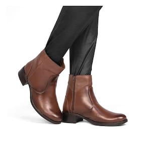 Bota Cano Curto Básica M&D Store Fecho em Zíper Bico Redondo - 37 - Marrom