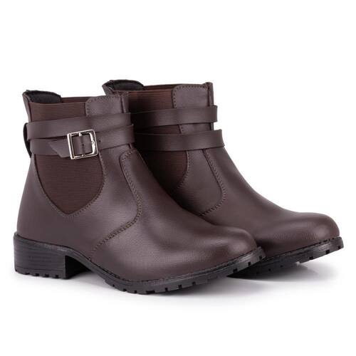 Bota Cano Curto Calce Fácil M&D Store Detalhes De Tira e Fivela - 40 - Marrom