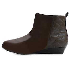 Nome: Bota Cano Curto Modare MD24-70761. Gênero: Feminino. Indicado Para: Dia a dia. Ocasião: Casual. Material Externo: Alternativo. Material Interno: Têxtil acolchoado. Detalhe: Costuras matelassê na parte traseira. Fechamento: Zíper na lateral externa. Palmilha: Forrada e macia. Solado: Borracha antiderrapante. Tipo de Salto: Anabela. Altura do Salto: 3,5 cm. Circunferência: 34 cm aproximadamente. Cano: 12,5 cm. Peso do Produto: 967 g (o peso varia de acordo com a numeração). Garantia do Fabricante: Contra defeito de fabricação. Origem: Nacional. Código Produto: 02071566. Marca: Modare.