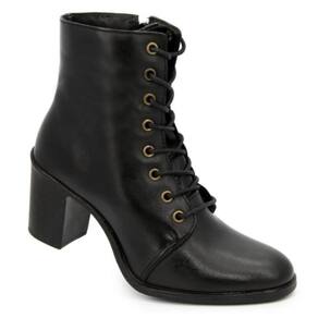 Bota Casual Couro Feminina Salto Grosso Cadarço Lisa Moda - 36 - Preto