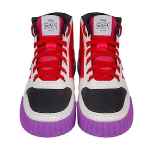 Tênis cano médio em sintético branco e preto a girl vai ficar estilosa em todos os momentos! A lateral do tênis em glitter degradê tem estampa emborrachada metalizada Mickey & Minnie . Palmilha com "Gel System'' mega confortável que absorve o impacto no calcanhar. Tênis de cano médio forrado em tecido que auxilia na absorção do suor e espuma comfy no calcanhar para mais conforto! Fechamento em cadarço vermelho. Solado em material micro expandido, material leve com muita aderência e estabilidade, além da flexibilidade, resistência térmica e alto desempenho antiderrapante. O solado tem variação de cores, completando o look cheio de personalidade!