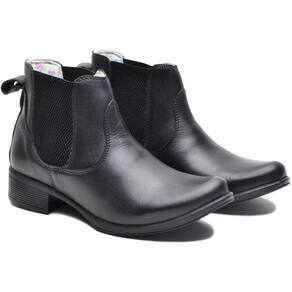 Bota Chelsea Feminina Couro Botina Cano Curto Elástico - 40 - Preto