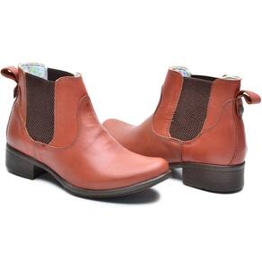 Bota Chelsea Feminina Couro Botina Cano Curto Elástico - 34 - Marrom