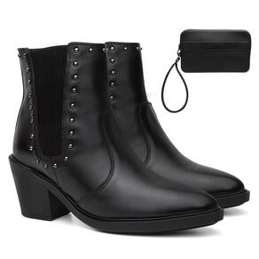 Modelo fashionista, esta bota da Valentina K + Carteira foi confeccionada para garantir durabilidade e proteção. O modelo confeccionado em couro e com material interno em tecido, permite maior conforto para produções do dia a dia. Com salto baixo, cano curto e fecho em zíper, inspira ousadia e atitude. Aposte na peça com calça jeans e camisa. Este modelo é pra quem busca conforto e estilo ao mesmo tempo! Bolsa confeccionada em PVC.