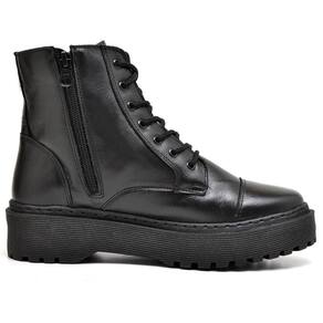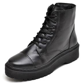 Bota Coturno Blogueira Plataforma de Couro Feminina Estilosa Solado Borracha Resistente - 36 - Preto