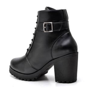 Bota Coturno Cano Curto Haldrys de Couro Lisa com Salto Medio Grosso - 33 - Preto