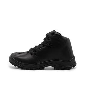 Bota Coturno Couro Masculino Motoqueiro Adventure Tratorada Cadarço Palmilha Espumada - 40 - Preto