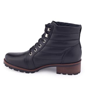 Bota Coturno Tratorada Pegada 281413 apresenta cano baixo com detalhe em gomos e fechamento por cadarço arredondado com passadores/ilhós de metal. É um lindo modelo com o cabedal fabricado em couro, esta bota é confortável com salto baixo e detalhes minimalistas. A bota é toda forrada internamente proporcionando maior conforto, sua palmilha é fixa, macia e revestida. A bota traz um bom encaixe ao pé, seu bico é arredondado e o salto baixo tem acabamento fachetado e possui 3,5cm de altura traseiro e 1cm de altura frontal. Seu solado é levemente tratorado com frisos para maior segurança.