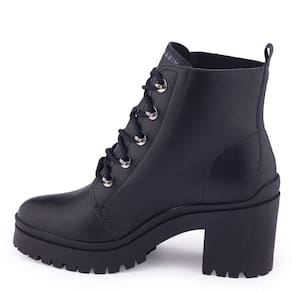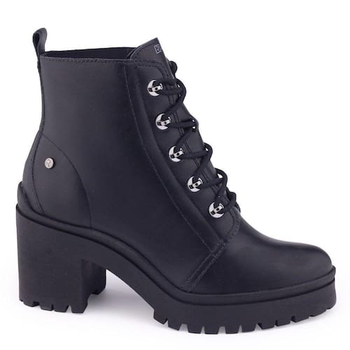 Bota Coturno 23-50122 tem cabedal fabricado em material sintético liso com detalhe em costuras, tem como detalhe passadores de cor metalizada e a logo da marca na lingua. É um modelo confortável, seu fechamento é através cadarços arredondados com passadores externos. Sua palmilha interna é fixa, macia e revestida em material têxtil apresentando a logo da marca. O solado levemente tratorado, possui aproximadamente 5cm de altura traseiro e 2cm de altura frontal, é confortável e traz segurança ao caminhar. Seu solado possui frisos para maior segurança.