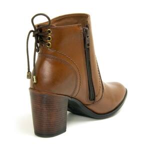 Bota Coturno Feminina Couro Lisa Zíper Salto Médio Casual - 39 - MARROM