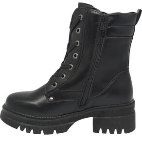 Seu design robusto conta com cano médio acolchoado, que oferece maior conforto ao redor do tornozelo, além de fechamento por cadarço e zíper lateral com ilhoses metálicos, garantindo ajuste firme e seguro. O destaque fica por conta do solado tratorado em borracha, que proporciona excelente aderência, estabilidade e um visual fashion e atual.