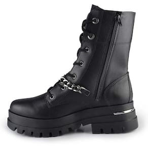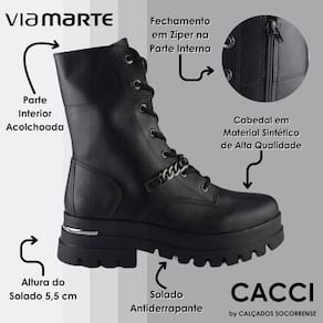 O coturno Via Marte vem com solado flatform tratorado. Com detalhe cromado e bico arredondado, atacador e fechamento prático no lado interno, este calçado une praticidade e estilo em cada detalhe. A corrende decorativa no lado externo adiciona um toque de personalidade, elevando o coturno a uma peça única e moderna. Seja para enfrentar o dia a dia com conforto e moda ou para destacar seu estilo em ocasiões especiais, o coturno Via Marte é a escolha ideal.
