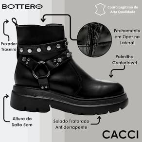 O fechamento é facilitado pelo elástico nas laterais com fecho-éclair e puxador traseiro. A construção do calçado é sólida e durável. A altura do cano é média, oferecendo suporte adequado ao tornozelo.