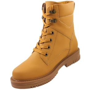 O modelo ainda tem um cano de aproximadamente 15 cm de medida. Na região interna é revestido em têxtil e seu fechamento é feito por cadarços, dispensando a necessidade de um zíper, pois se ajusta bem ao formato do seus pés. Muito conforto e estilo para qualquer estação.