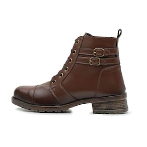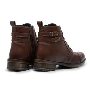 Bota Coturno Feminino Salto Baixo Cano Curto Detalhe Fivela Lateral Macia Confortavel - 37 - Marrom
