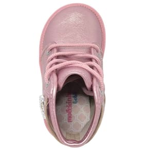 Feita com material de Napa Metal Malibu, esta bota apresenta uma tonalidade suave de rosa, adicionando um toque de delicadeza ao visual da sua princesinha. O enfeite de coração em metal na lateral da bota adiciona um charme adorável, capturando o coração das pequenas fashionistas.