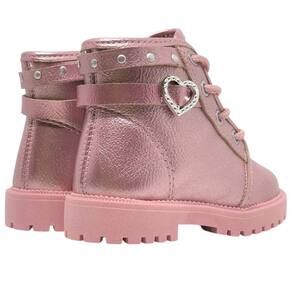 Feita com material de Napa Metal Malibu, esta bota apresenta uma tonalidade suave de rosa, adicionando um toque de delicadeza ao visual da sua princesinha. O enfeite de coração em metal na lateral da bota adiciona um charme adorável, capturando o coração das pequenas fashionistas.
