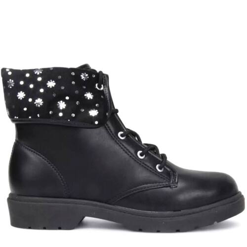 Possui fechamento por cadarço, para facilitar o calce e lindos detalhes de flores prateadas em seu pelinho, o que deixa o modelo ainda mais bonito e adequado para qualquer estação.