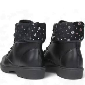 Possui fechamento por cadarço, para facilitar o calce e lindos detalhes de flores prateadas em seu pelinho, o que deixa o modelo ainda mais bonito e adequado para qualquer estação.
