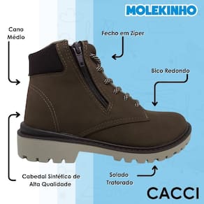 O Coturno Molekinho é ideal para meninos que gostam de unir atitude, conforto e versatilidade em um único calçado. Com design robusto e visual marcante, ele transforma qualquer produção básica em um look cheio de personalidade, perfeito para dias mais frescos ou para quem não abre mão de estilo o ano todo.