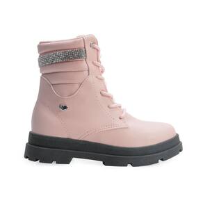 Nome: Bota Coturno Kidy KD24-36300. Gênero: Menina. Indicado Para: Moda. Estilo da Peça: Casual. Ocasião: Dia a dia. Material Externo: Alternativo com recortes e costuras. Material Interno: Têxtil acolchoado. Detalhes: Pin da marca na lateral externa e tira com aplicações de strass no cano. Fechamento: Cadarço. Palmilha: Anatômica e macia. Cano: Médio 12,5 cm de altura. Circunferência: 26 cm aproximadamente. Tipo de Solado: Levemente tratorado. Solado: Borracha antiderrapante. Peso do Produto: 793 g (o peso varia de acordo com a numeração). Garantia do Fabricante: Contra defeito de fabricação. Origem: Nacional. Código Produto: 04070275. Marca: Kidy.