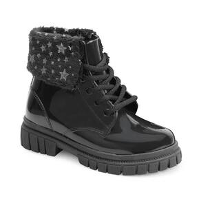 Nome: Bota Coturno LueLua LL24-13900. Gênero: Menina. Indicado Para: Dia a dia. Estilo da Peça: Lisa. Ocasião: Casual. Material Externo: PVC. Material Interno: PVC. Detalhe: Têxtil macio aplicado no cano com desenhos. Fechamento: Cadarço. Palmilha: EVA e removível. Tipo de Solado: Tratorado. Solado: PVC antiderrapante. Peso do Produto: 804 g (o peso varia de acordo com a numeração). Garantia do Fabricante: Contra defeito de fabricação. Origem: Nacional. Código Produto: 04070260. Marca: LueLua.