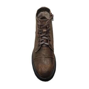 A bota Garage Eron é confeccionado em couro na cor marrom. O fechamento é em cadarço de amarrar, bico arredondado, forro de tecido e a palmilha é feita de Fibra. Seu solado é feito de Borracha.