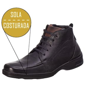 Bota Coturno Masculino Couro Liso Macio Confortavel Ajuste Cadarço Solado Confort - 42 - Preto