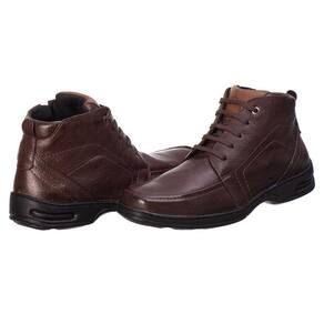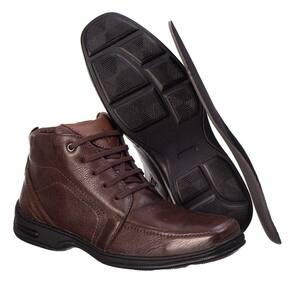 Bota Coturno Masculino Couro Liso Macio Confortavel Ajuste Cadarço Solado Confort - 42 - Marrom